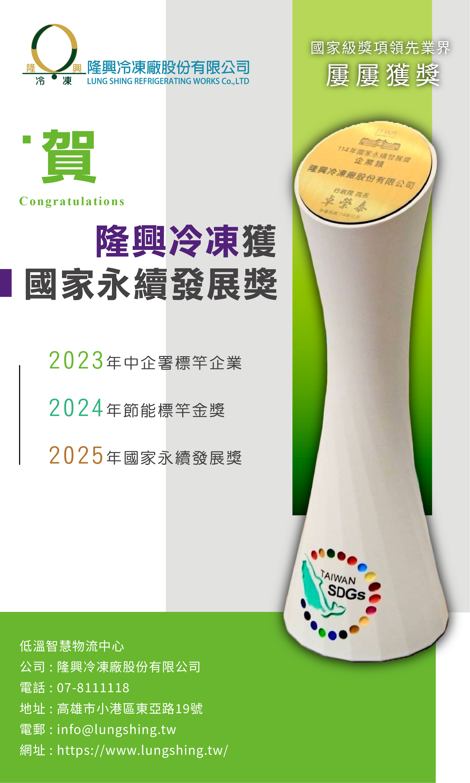 隆興冷凍獲頒永續界奧斯卡之稱的國家永續發展獎
